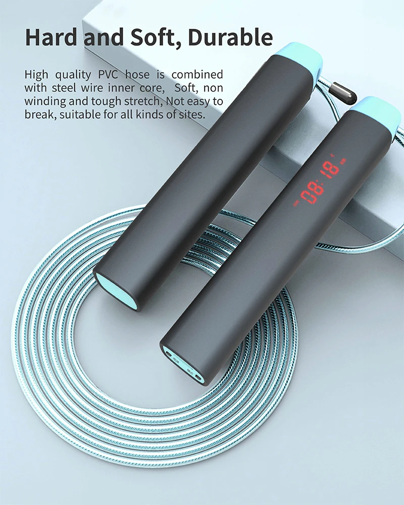 4.Our jump ropes for fitness for men are equipped with a lightweight foam handle that is made from friendly environmental ABS with EVA material. The foam handles give you comfortable touch and non-slip when exercising, Also, the main handle is embedded with an HD LCD display that provides users a clear view of the rope skipping data, like skip time or total skips.