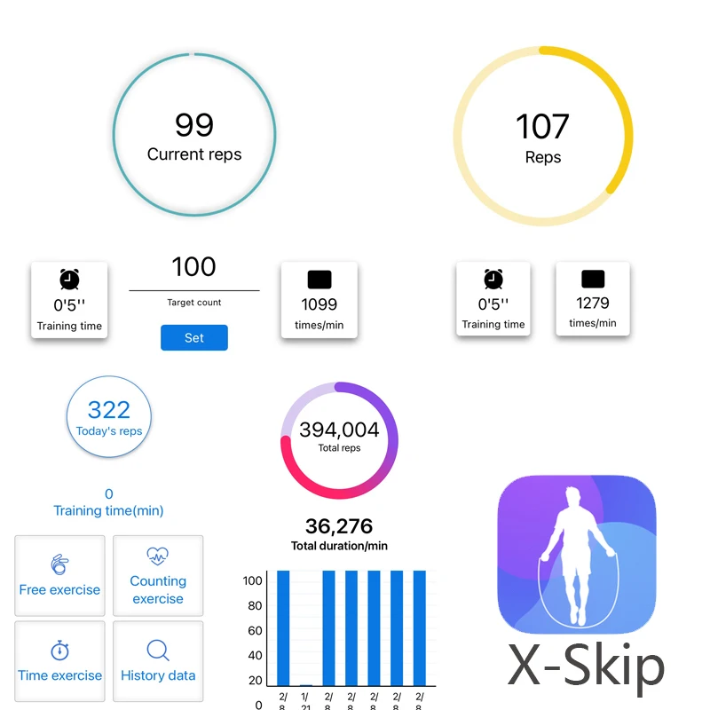 1. SmartRope app keeps track of workout data: jump count, calories burned, and time spent jumping.